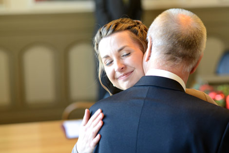 Zart wurde der kleine Schwangerschaftsbauch von der Jacke verhüllt. Trotz der Sonnenstrahlen war es ein eiskalter Dezembertag in Uelzen. Die kleine Hochzeitsgesellschaft verweilte nicht lange vor dem Standesamt, sondern zog es vor im Standesamt zu warten. Dann ging es endlich los! Endlich konnte geheiratet werden ...